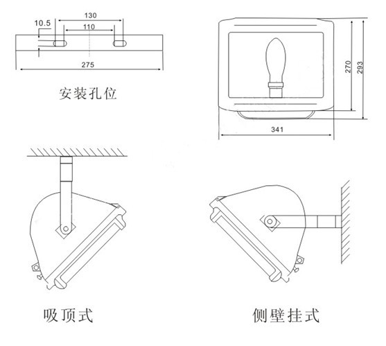 可采用座式、吸頂式、壁掛式和吊頂式等多種安裝方式,適應不同工作現場的照明需要,安裝角度可在180°范圍內調節。